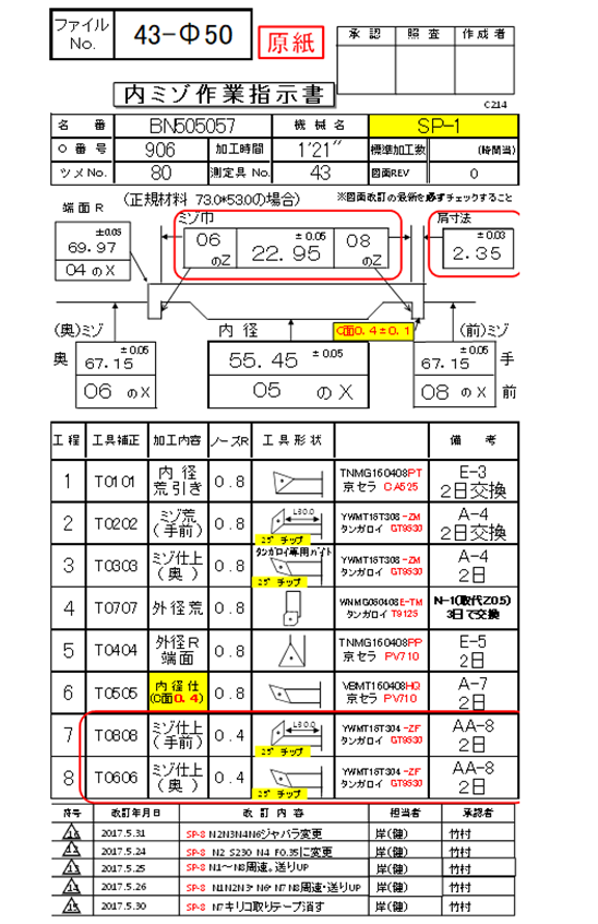 上の指示書だと赤枠で囲んだところに補正を入れます。今回だと06のZと08のZに同じ数値を入力してください。