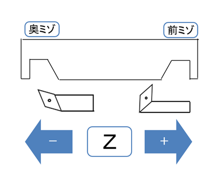 刃物は手前に動かすときはプラス、奥に動かすときはマイナスです。