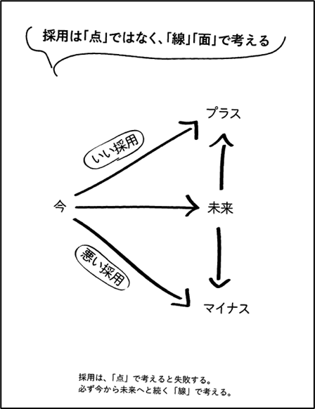 採用は「点(その時が良い)」で考えるのではなく、「線(今後の活躍)」も考えなければならないということも学びました。