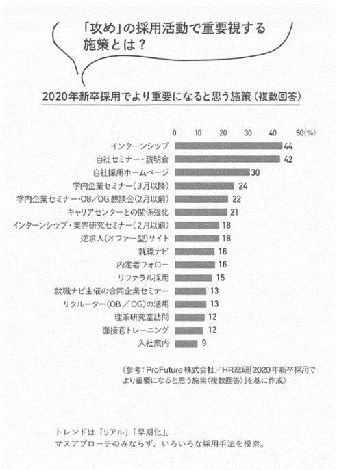 本文の「攻め」の採用活動で重視する施策アンケートで、インターンシップが多く、今まで受講したセミナーでもインターンシップをしなければ採用できないと聞いてきました。