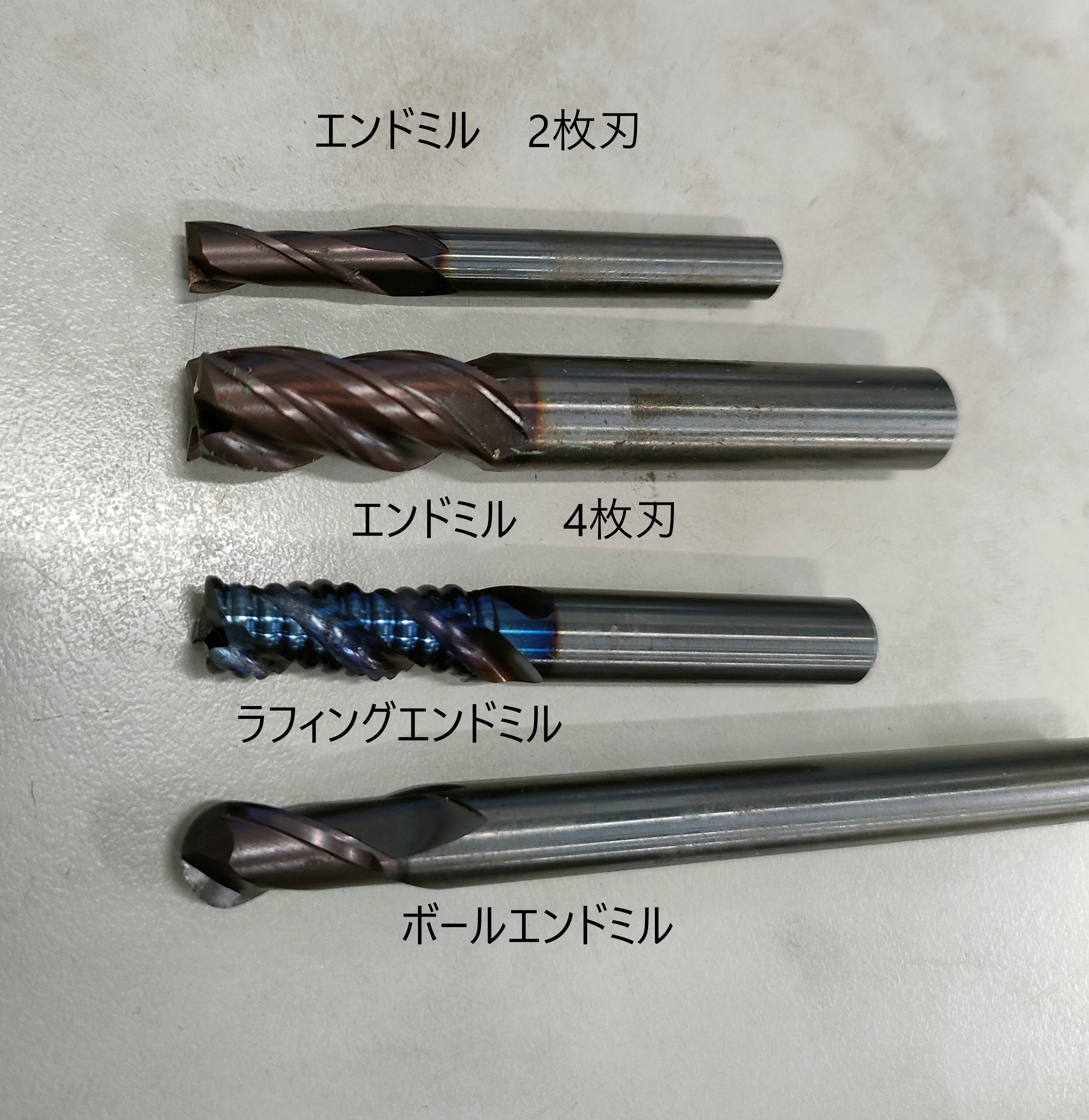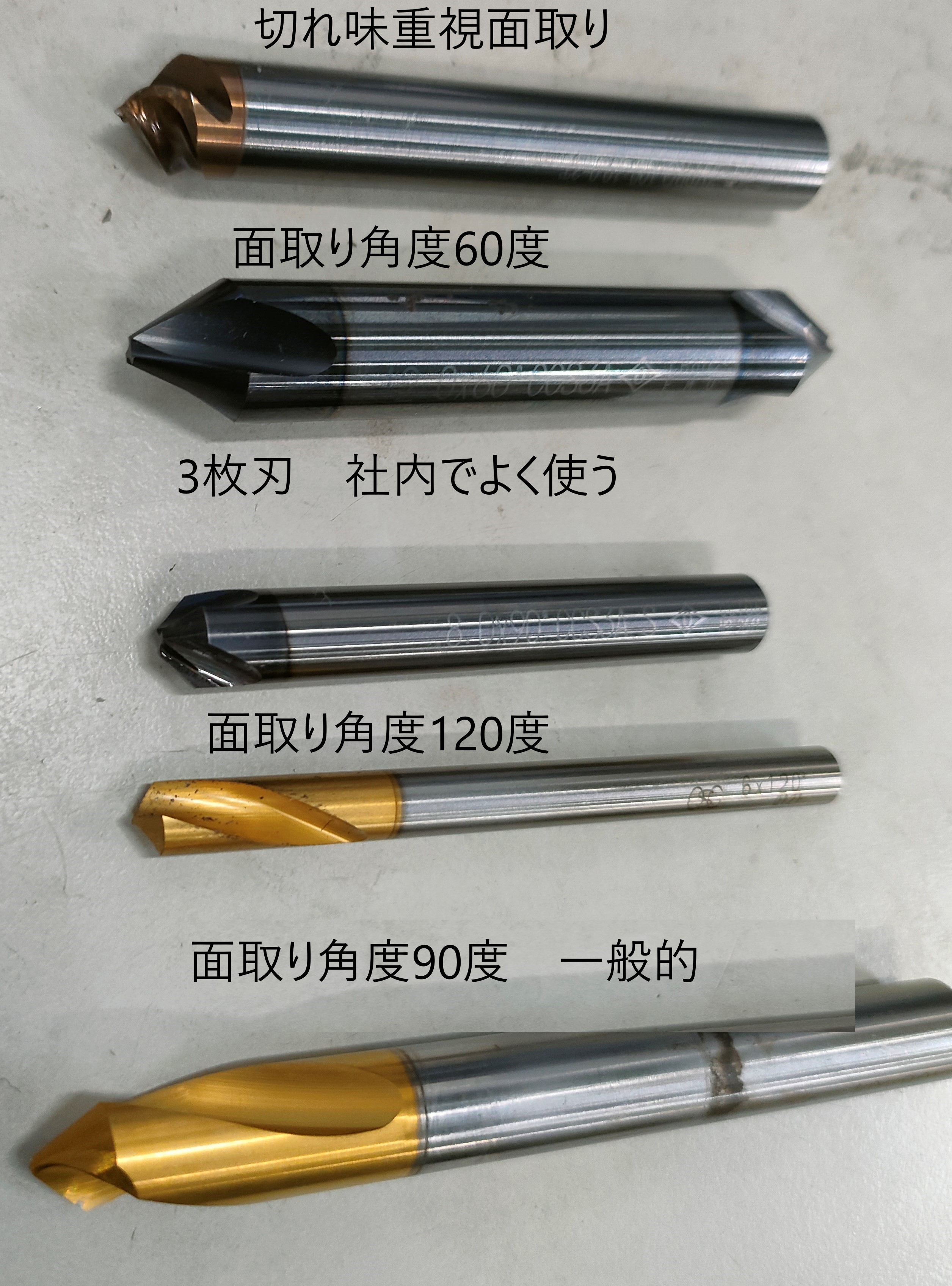 経験を積んでいる人でなければ、上の画像でどれがドリル、エンドミル、面取りなのか解りません。