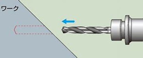 ドリル加工前にセンター穴加工を実施することで、ドリルの食付き精度を向上させ、ワーク進入時の曲がりを防止することができます。