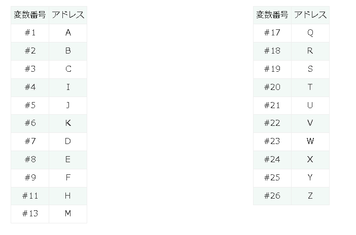 変数にはローカル変数、コモン変数、システム変数の3つがあり、「#」の後ろの数字で決まります。