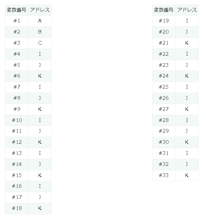 I J K は入力の順序でマクロの#4から順番に割り当てられます。