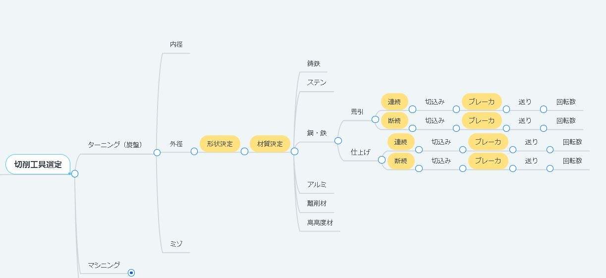 鋼チップを選ぶ工具選定ルートは下記のようになります。